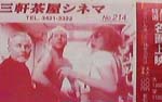 | 肉のハナマサの上にあるのが、この「三軒茶屋シネマ」だ。狭い入り口、古ぼけた階段、これぞ名画座である。文句あるかという感じだ。 |