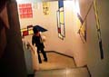 まあ、そんなことはいいが、劇場は地下にある。階段をかなり降りて行かなければならない。このまま、地の底にいってしまうかのような不安をよそに、階段の壁面も、あの旗と同様の、統一されたデザインだ。