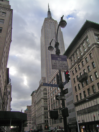 ■タクシーでマンハッタンまで。そういえば、この旅も、このあいだの直島と同じようにトキオンという雑誌に紀行文を書くが、今回はこのあいだのように写真をたくさん撮る余裕があまりない。というのも、やはり腰が痛いからだ。エンパイアステートビルとか、マディソンスクエアガーテンなどのある、まあ、よく聞く名前の観光地らしいところにホテルはあった。今回のリーディング公演を企画してくれた「マルティンE.シーガル演劇センター」のある、ニューヨーク市立大学の大学院センターも歩いてすぐの場所だった。この公演全体のプログラム・ディレクターのフランクさんと会って短い時間だったが少し話をした。大学院センターの学食みたいなところに案内され軽い食事をしたら、天井がガラスばりで、そこからエンパイアステートビルが見えた。ホテルに戻る途中、薬局に寄って風邪薬を買う。僕がなにも考えず棚からこれでいいだろうとばかりにクスリを手にすると、Kさんが慎重に、ほかのクスリとの飲みあわせについて店の人に質問してくれた。